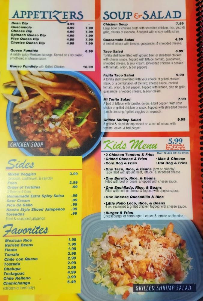The menu at Mi Torito offers a variety of traditional Mexican dishes. Highlights include flavorful enchiladas and sizzling fajitas. Tacos come in numerous styles, like ground beef or chicken. Fresh ingredients bring each dish to life. For lighter options, the guacamole salad and taco salad stand out. Don't miss the desserts like fried ice cream, a perfect ending. Prices are reasonable, averaging around $12 per meal, making it accessible for all. Mi Torito's menu captures the essence of Mexican cooking while keeping up with local tastes.